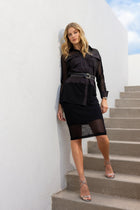 Unleash your daring side with the Alessia Mesh Pencil Skirt. This mesh pencil skirt is a show-stopper, featuring mixed media fabric,...